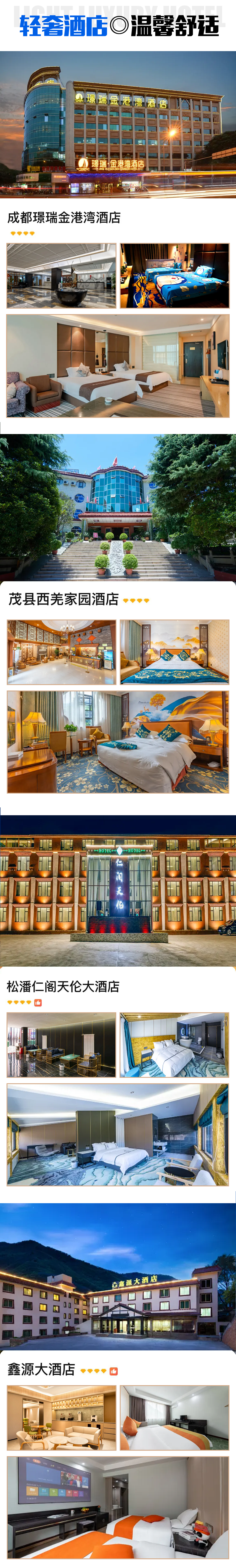 川主寺*1晚(4钻):松潘仁阁天伦大酒店、旭日仙阁酒店、吉瑞大酒店或同级